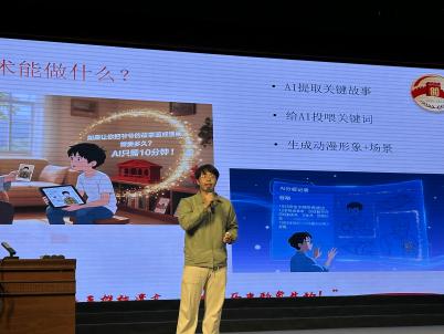 在互動環節,學生們踴躍提問,既有對軍旅生活的好奇,也有對歷史細節的探尋。團隊現場展示了運用人工智能技術創作的老兵動漫形象,并向同學們發放了以這些形象為主題的帆布包、書簽、活頁本、明信片等文創產品。學生們紛紛舉手表達對文創禮品的喜愛,現場氣氛被推向高潮。通過科技與藝術的結合,紅色精神在學生心中被進一步拉近。
