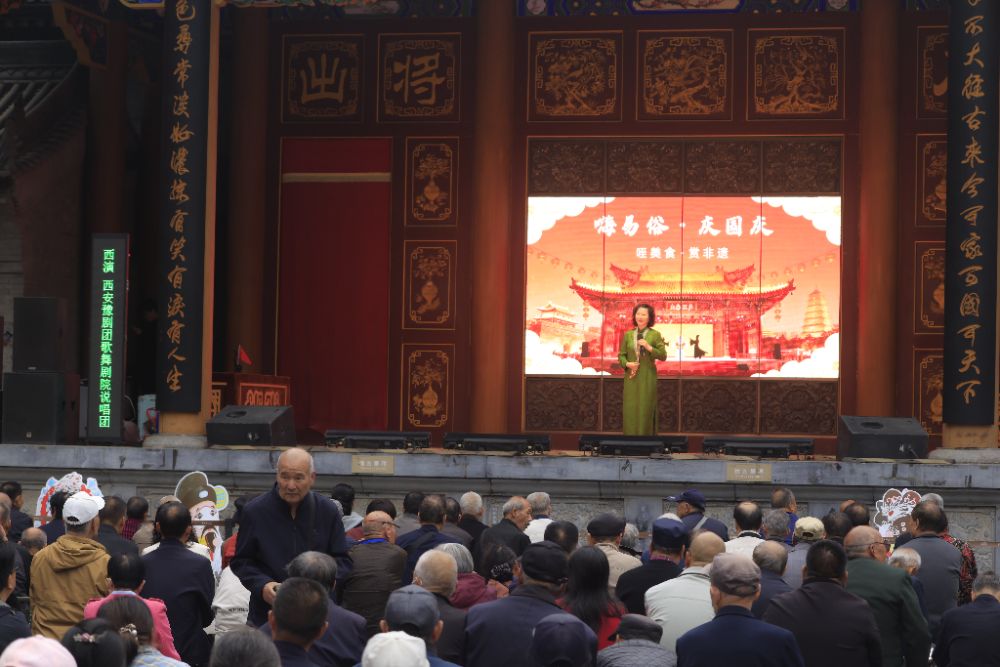 同學們現場觀看了題為“嗨易俗·慶國慶呷美食·賞非遺”的秦腔專場演出。演出以歷史傳承為主線,結合現代舞臺技術,生動呈現了秦腔藝術的時代生命力。演員們精湛的唱腔演繹和富有張力的表演,使觀眾深切感受到西北戲曲高亢激越的藝術風格。此次活動不僅豐富了學生的審美體驗,也增強了其對地方戲曲群眾基礎和社會影響力的直觀認知。